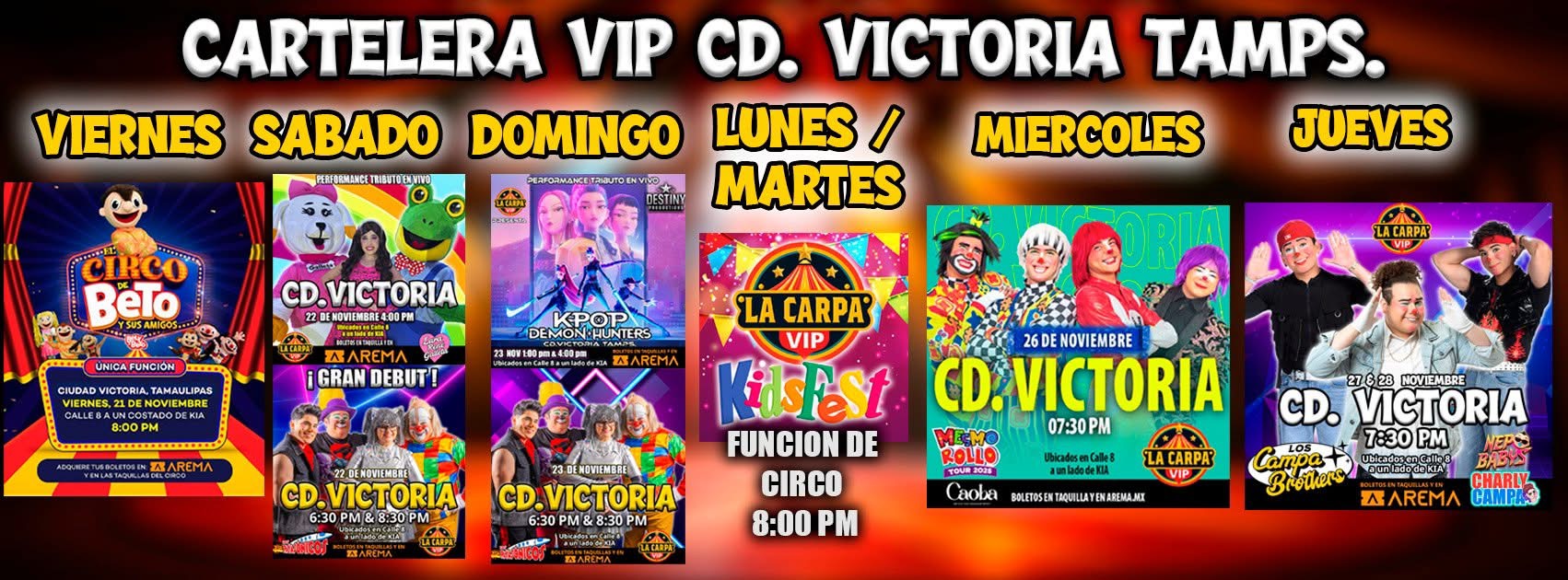 Ciudad Victoria, Tamaulipas.– Este martes llegará a la capital tamaulipeca uno de los circos más famosos del noreste del país: La Carpa VIP, que traerá consigo alegría y diversión para los más pequeños del hogar.