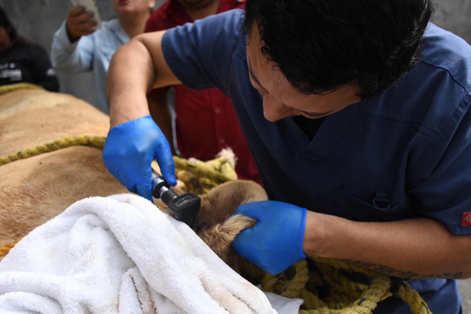 Durante las evaluaciones realizadas por especialistas se identificó una afección en uno de sus oídos, así como una pequeña masa que está siendo analizada por el equipo veterinario para determinar su origen.