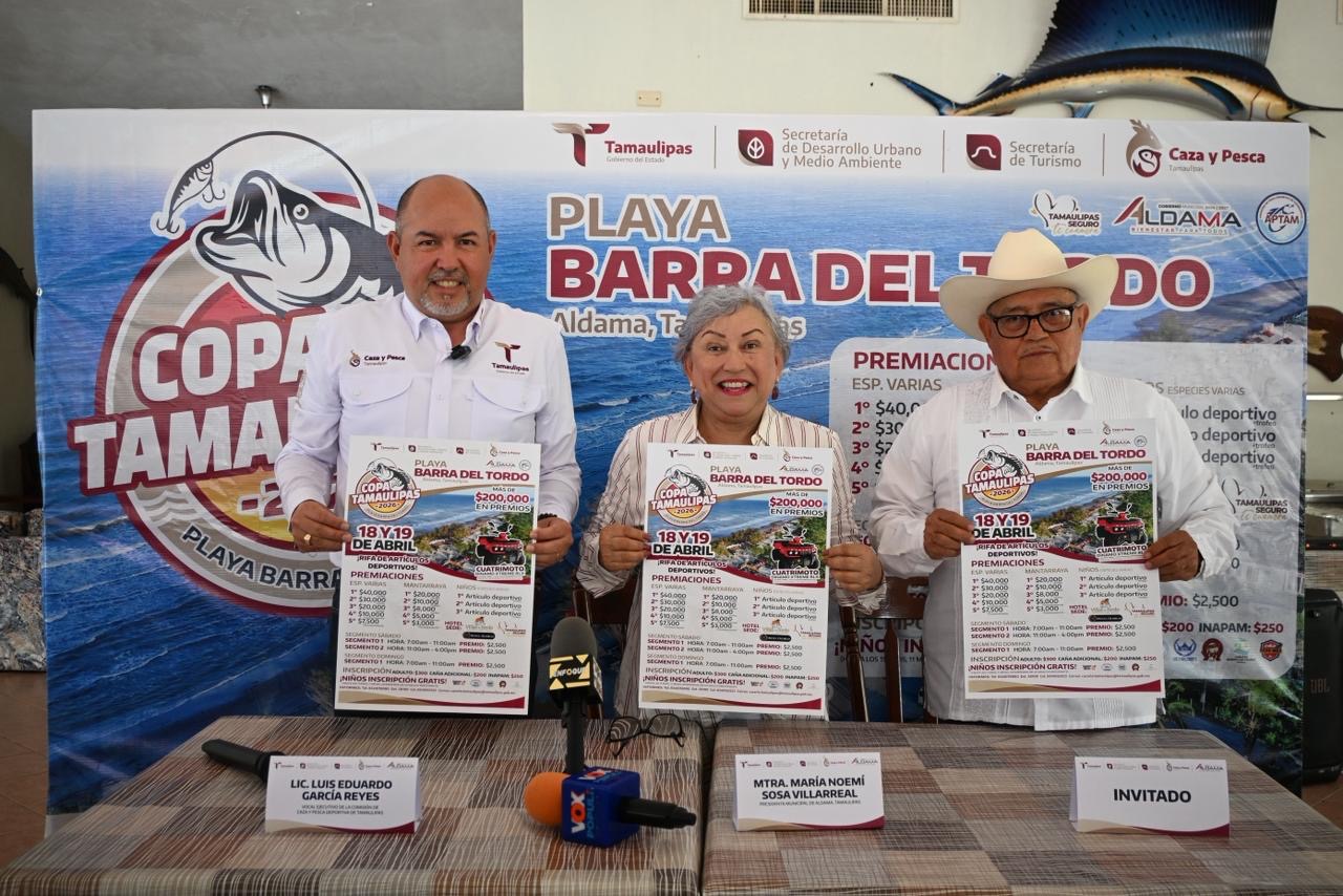 Aldama, Tamaulipas.– Con condiciones óptimas y una estrategia bien definida, fue presentada oficialmente la Copa Tamaulipas 2026, que se llevará a cabo los próximos 18 y 19 de abril en la playa Barra del Tordo.